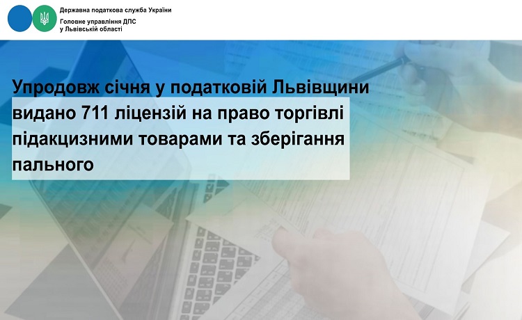 У січні 2026 року видано 711 ліцензій на право торгівлі підакцизними товарами та зберігання пального, внесено змін до відомостей, що містяться в Єдиному реєстрі ліцензіатів – 168 ліцензій на право торгівлі підакцизними товарами та зберігання пального.