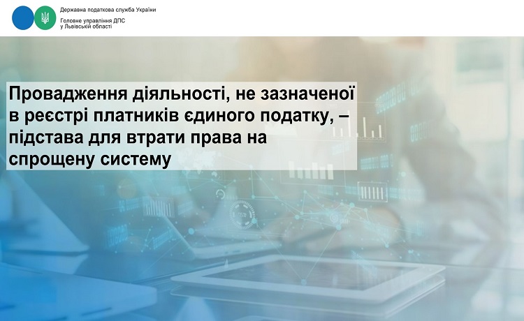 Головне управління ДПС у Львівській області звертає увагу фізичних осіб – підприємців, які перебувають на спрощеній системі оподаткування, що вони не мають права здійснювати види господарської діяльності, не внесені до їхніх облікових даних та які відсутні у реєстрі платників єдиного податку.
