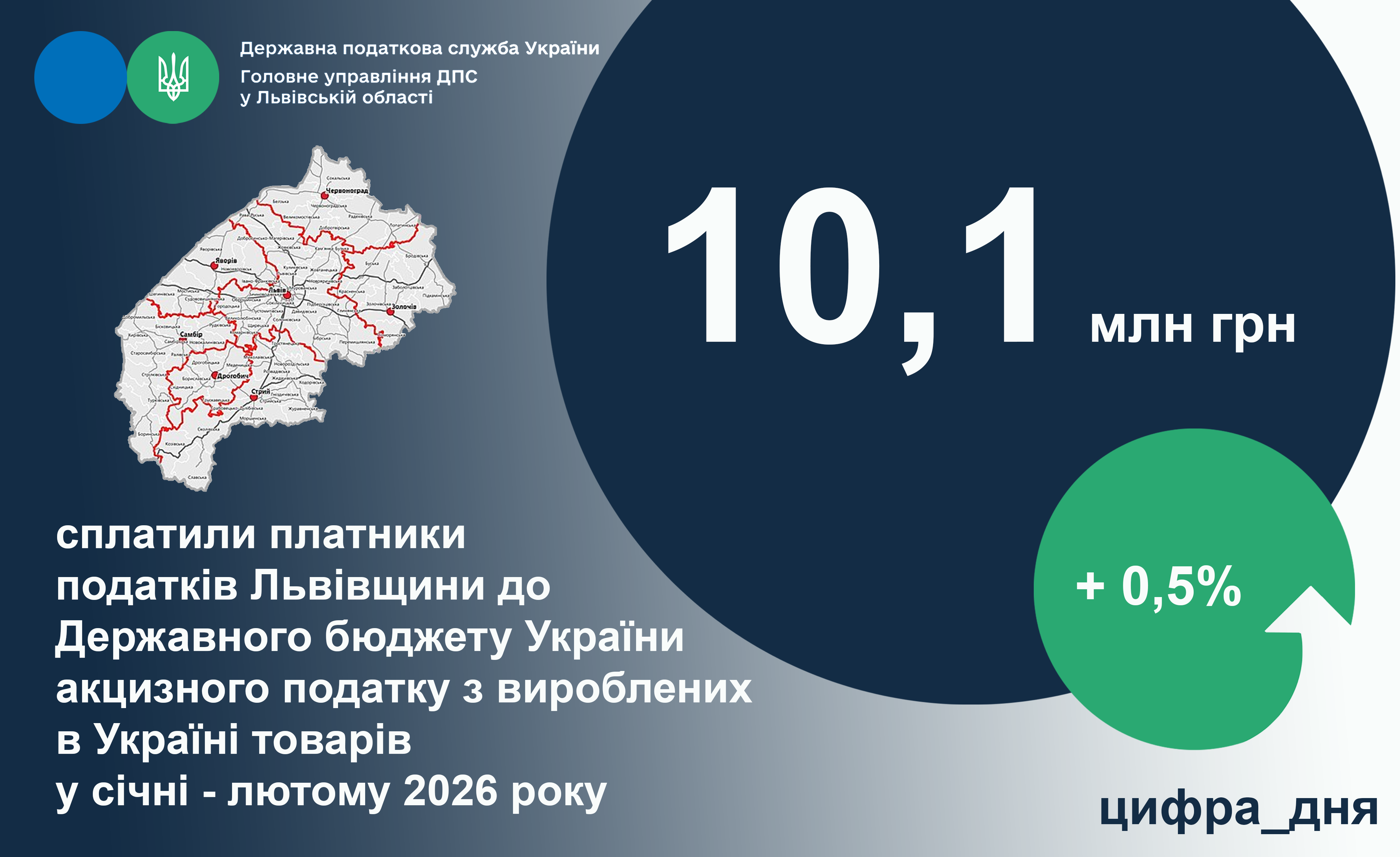 Акцизного податку з вироблених в Україні товарів у січні-лютому 2026 року надійшло до державного бюджету від платників Львівської області 10,1 млн гривень.