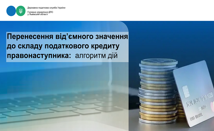 Головне управління ДПС у Львівській області звертає увагу платників на особливостях перенесення від’ємного значення до складу податкового кредиту правонаступника, зокрема, передбачено такий алгоритм перенесення: