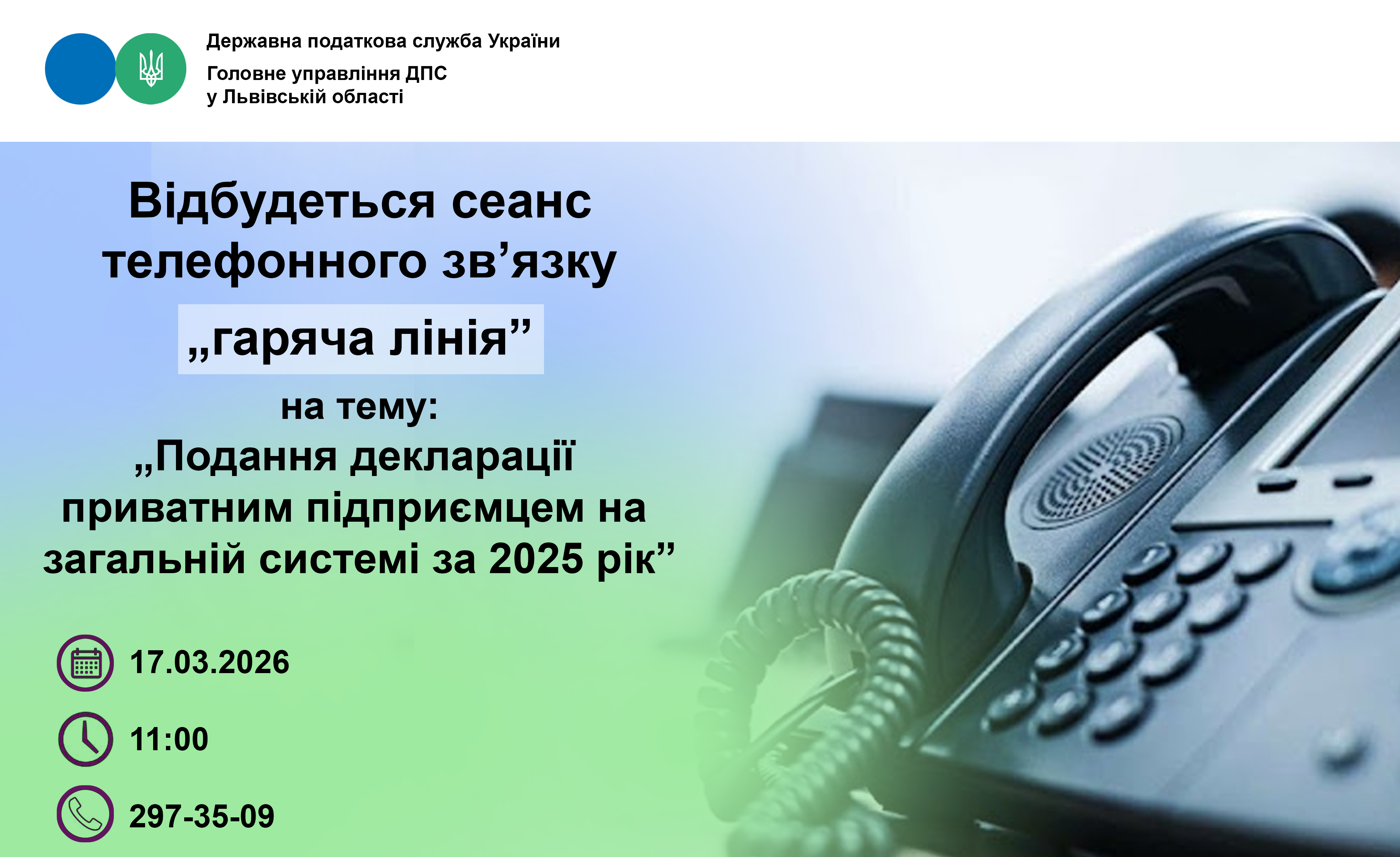 До уваги фізичних осіб-підприємців! Відбудеться сеанс телефонного зв'язку "гаряча лінія"