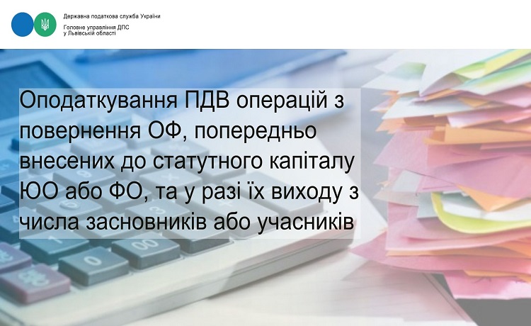 Отже, операція з повернення основних фондів, попередньо внесених до статутного капіталу юридичної особи іншими юридичними або фізичними особами, у разі їх виходу з числа засновників або учасників такої юридичної особи, підпадає під визначення об’єкта оподаткування ПДВ та має оподатковуватись на загальних підставах за основною ставкою.
