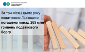 Упродовж січня-березня 2026 року погашення податкового боргу живими коштами становило 265,6 млн грн (стягнення грошових коштів інкасовими дорученнями, сплата розстрочених податків та самостійне погашення боргу, інше).