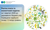 За січень-березень 2026 року по рентній платі та екологічному податку при доведеному показнику доходів до державного бюджету – 1 135,6 млн грн, фактично надійшло – 1 344,9 млн грн (+209,3 млн грн) або 118,4 відс. до завдання, зокрема: