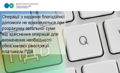 Операції з надання благодійної допомоги не враховуються при розрахунку загальної суми від здійснення операцій для визначення необхідності обов’язкової реєстрації платником ПДВ