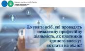 Платникам єдиного внеску – особам, які провадять незалежну професійну діяльність, контролюючим органом наступного робочого дня з дня взяття на облік безоплатно надсилається (вручається) повідомлення про взяття їх на облік за формою № 2-ЄСВ згідно з додатком 3 до Порядку № 1162.