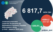 Військовий збір: від платників Львівщини від початку 2025 року до держбюджету спрямовано понад 6,8 млрд гривень