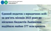 Єдиний податок з юридичних осіб: за дев’ять місяців 2025 року до місцевих бюджетів Львівщини надійшло майже 577 млн гривень