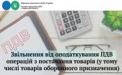 Звільнення від оподаткування ПДВ операцій з постачання товарів (у тому числі товарів оборонного призначення)
