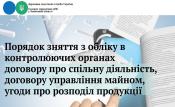 Договори про спільну діяльність, договори управління майном та угоди про розподіл продукції (далі – Договір) знімаються з обліку у контролюючих органах після їх припинення, розірвання, закінчення строку дії чи після досягнення мети, для якої вони були укладені, визнання їх недійсними у судовому порядку, а також у разі втрати ознак платника податку, які визначені ПКУ, за умови відсутності грошових зобов’язань і податкового боргу або після їх погашення (для договорів про спільну діяльність та договорів управління майном).
