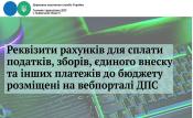 Реквізити рахунків для сплати податків, зборів, єдиного внеску та інших платежів до бюджету розміщені на вебпорталі ДПС