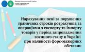 У разі якщо виконання договору за операціями з імпорту товарів зупиняється у зв’язку з виникненням форс-мажорних обставин, перебіг строку розрахунків, установленого НБУ, та нарахування пені зупиняється на весь період дії форс-мажорних обставин та поновлюється з дня, наступного за днем закінчення дії таких обставин.