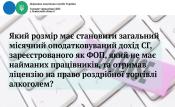 З 01 жовтня 2025 року розмір загального місячного оподатковуваного доходу суб’єкта господарювання, зареєстрованого як фізична особа - підприємець, що не має найманих працівників, та який отримав ліцензію на право роздрібної торгівлі алкогольними напоями, має становити не менше 2 розмірів мінімальної заробітної плати, встановленої законом на 1 січня звітного (податкового) року.