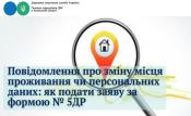 Фізична особа – платник податків у разі зміни місця проживання, перейменування назви міста чи вулиці, зміни податкової адреси, імені або прізвища зобов’язана повідомити про це органи податкової служби шляхом подання заяви за ф. № 5ДР.