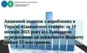 У жовтні 2025 року до загального фонду державного бюджету акцизного податку з вироблених в Україні підакцизних товарів надійшло 6,2 млн гривень. Про це повідомив начальник Головного управління ДПС у Львівській області Микола Никитюк.