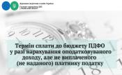Враховуючи викладене, податковий агент повинен сплатити (перерахувати) до бюджету податок на доходи фізичних осіб, у разі нарахування оподатковуваного доходу, але не виплаченого (не наданого) платнику податку, в термін не пізніше 30 календарних днів, наступних за місяцем нарахування доходу.
