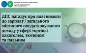 ДПС нагадує про нові вимоги до зарплат / загального місячного оподатковуваного доходу у сфері торгівлі алкоголем, тютюном та пальним