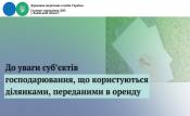 До уваги суб’єктів господарювання, що користуються ділянками, переданими в оренду