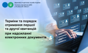 - Перша квитанція надсилається автору протягом двох годин після отримання документа (або наступного робочого дня, якщо документ надійшов після закінчення операційного дня). У ній вказано, чи пройшов документ перевірку.