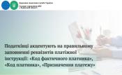 Так, Інструкцією НБУ №163 визначено перелік обов’язкових реквізитів платіжної інструкції. Платники під час сплати податків, зборів, інших платежів та єдиного внеску повинні дотримуватися наступних правил заповнення обов’язкових реквізитів платіжної інструкції, а саме «Призначення платежу», «Код платника» та «Код фактичного платника».