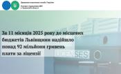 У листопаді 2025 року надходження до місцевих бюджетів Львівщини по платі за ліцензії, що контролюють податкові органи, становлять 9,9 млн грн, або 116,4 відс. доведеного завдання (додатково надійшло 1,4 млн гривень). Це на 2,7 млн грн або на 37,9 відс. більше порівняно з минулим роком.
