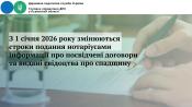 З 1 січня 2026 року про посвідчені договори та видані свідоцтва про спадщину приватні нотаріуси звітуватимуть щоквартально (з деталізацією по місяцях звітного кварталу), а державні – щомісячно.