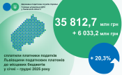 Упродовж січня - грудня 2025 року надходження податкових платежів до місцевих бюджетів Львівської області становили 35 812,7 млн гривень.