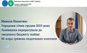 Микола Никитюк: Упродовж  січня-грудня 2025 року Львівщина перерахувала до зведеного бюджету майже 80 млрд гривень податкових платежів