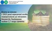 У 2025 році при доведеному показнику доходів до місцевих бюджетівпо платі за землю з юридичних осіб 2 445,2 млн грн надходження становили 2 683 млн гривень.