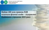 За 12 місяців 2025 року забезпечено надходження ПДВ з фізичних осіб – підприємців в сумі 398,0 млн гривень.