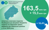 Надходження податку на нерухоме майно, відмінне від земельної ділянки, у січні 2026 року становили 163,5 млн гривень. Порівняно з відповідним періодом 2025 року вони збільшилися на 10,4% або на 15,3 млн гривень.