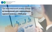 Статтею 32 Закону України від 03 грудня 2025 року №4695-IX «Про Державний бюджет України на 2026 рік» установлено, що у 2026 році розмір максимальної величини бази нарахування єдиного внесок на загальнообов’язкове державне соціальне страхування – максимальної суми доходу застрахованої особи на місяць, на яку нараховується єдиний внесок, визначеної Законом України від 08 липня 2010 року №2464-VI «Про збір та облік єдиного внеску на загальнообов’язкове державне соціальне страхування», дорівнює: