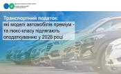 До оподаткування потрапляють автомобілі віком до 5 років, середня ринкова вартість яких перевищує встановлений поріг. У 2026 році це понад 3,2 млн гривень. Для таких авто встановлено фіксовану ставку транспортного податку – 25 тис. грн на рік за кожен автомобіль.