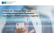 Станом на 01 березня 2026 року на обліку в податковій Львівщини перебували 258266 платників податків