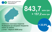 Упродовж січня – березня 2026 року надходження плати за землю до місцевих скарбниць становили 843,7 млн гривень. Це на 22,9 % або на 157,2 млн грн більше порівняно з відповідним періодом минулого року.