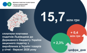 Акцизного податку з вироблених в Україні товарів у січні-березні 2026 року надійшло до державного бюджету 15,7 млн гривень. Порівняно з січнем-березнем 2025 року надходження збільшились на 2,3% або на 0,4 млн гривень.