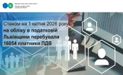 У ГУ ДПС у Львівській області станом на 01.04.2026 на обліку перебували 16054 платники податку на додану вартість (далі – ПДВ): 14192 юридичних особи та 1862 фізичних особи-підприємці. Кількість юридичних осіб-платників ПДВ за останні дванадцять місяців збільшилася: на 323 суб’єкти господарювання ‒ 293 юридичних особи та на 30 ФОП.